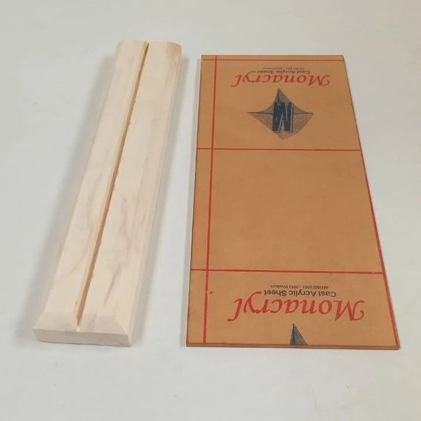 Acrylic Desk name plate with Pine Wood base