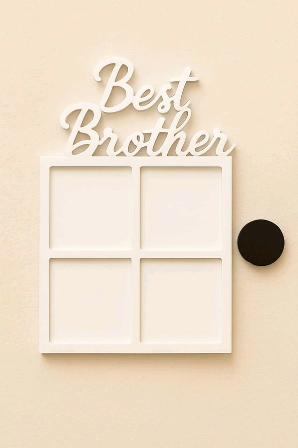 A heartfelt keepsake for your loved ones. Features custom script text, 4 fixed photo slots, and a clean white finish. Photos cannot be interchanged. Comes with black round magnet backing for fridges. Perfect for gifting or daily memories.
