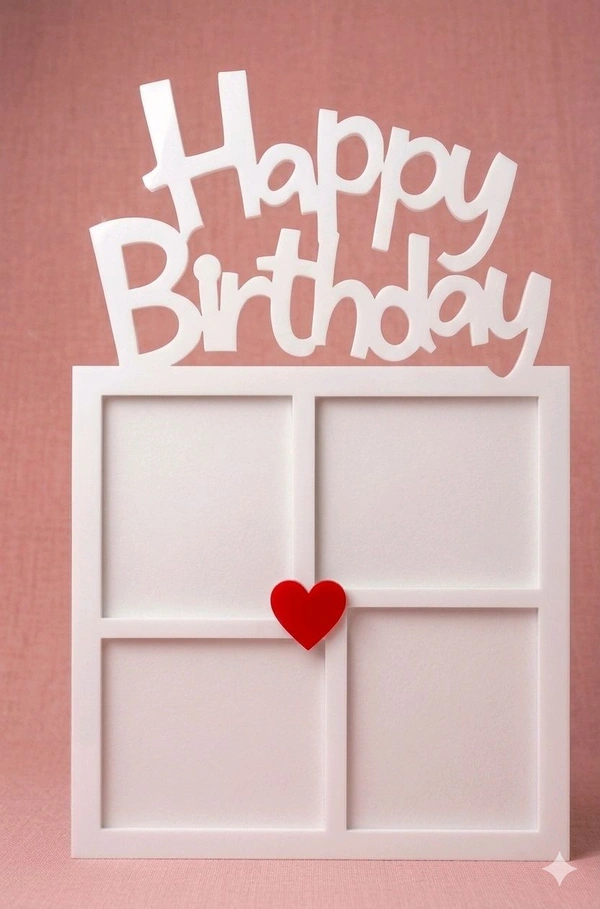 Make their special day last all year. This premium double-layer acrylic magnet features bold 'Happy Birthday' lettering in crisp white, with four fixed photo slots to showcase your favorite birthday memories. Photos cannot be interchanged, turning it into a lasting celebration keepsake. The glossy red heart at the center adds a sweet touch against the clean white finish. Strong magnet backing keeps it displayed proudly on any fridge or metal surface. A perfect personalized gift for birthdays that keeps the joy front and center, every single day.