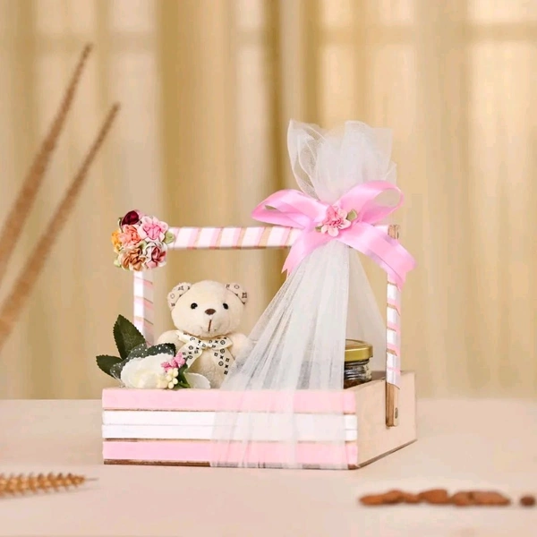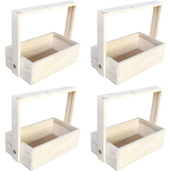 Fancy Pine Wood Gift Baskets – 5x8x2.5 IN (Pack of 4) Wooden Hamper