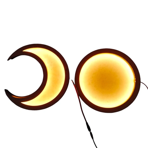 Beautiful half moon or crescent moon shadow box with LED lights. Product is gone come with back hook and Adopter to connect to power source.