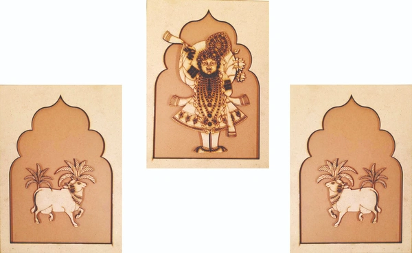 Jharokha with Pichwai Shrinathji & Cow set of 3 - II