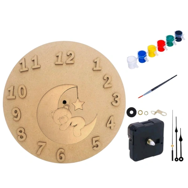 Comes with clock machine set, back hook , glue stick ,paint kit and brush