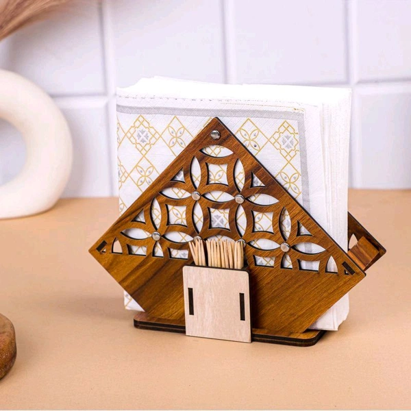 Laser Cut Napkin / Tissue Holder With Toothpick Holder