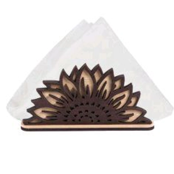 Laser-cut dual-tone napkin holder with sunflower design.