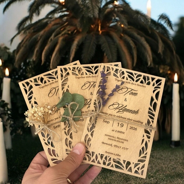 Laser Cut Wedding Invitation Set - Birch