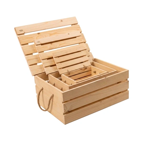 Pinewood Crate Box- Set Of 3