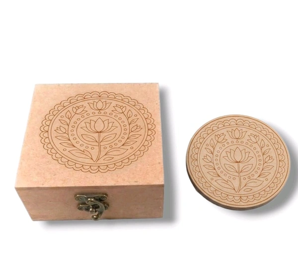 Premarked MDF Coasters & Box- lotus