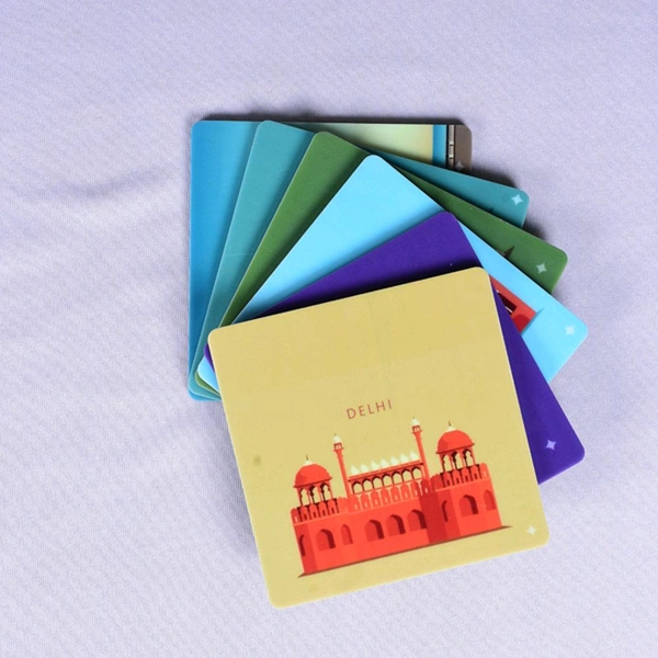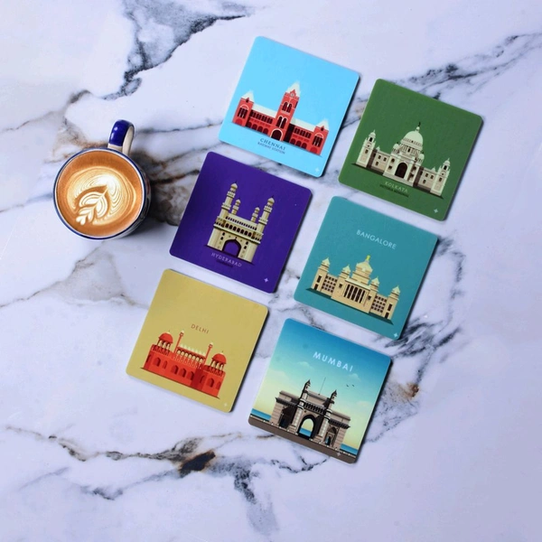 Premium Acrylic Tea Coasters UV Printed Set of 6 with Stand |Cities