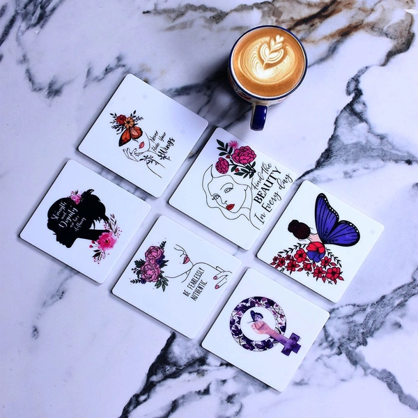 Premium Acrylic Tea Coasters UV Printed Set of 6 with Stand |Feminine