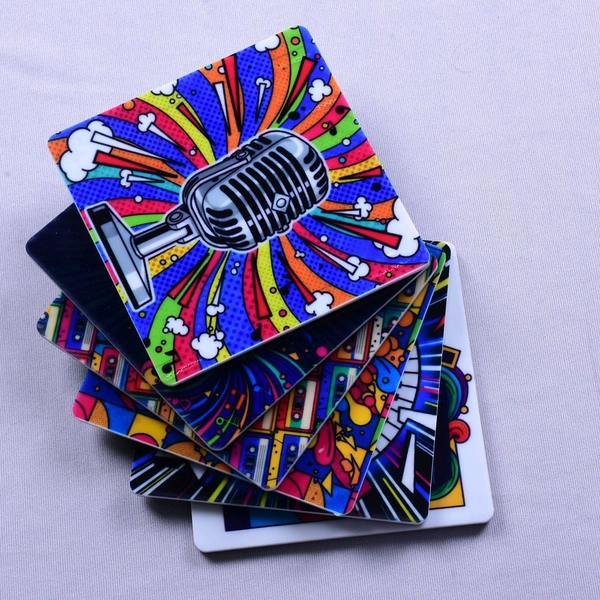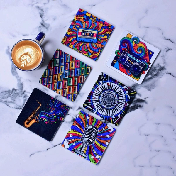 Premium Acrylic Tea Coasters UV Printed Set of 6 with Stand | Music
