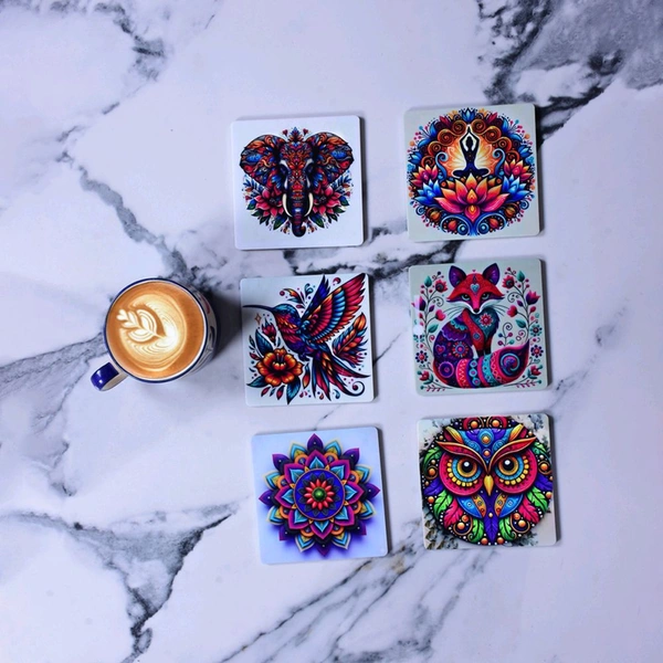 Premium Acrylic Tea Coasters UV Printed Set of 6 with Stand | Spiritual