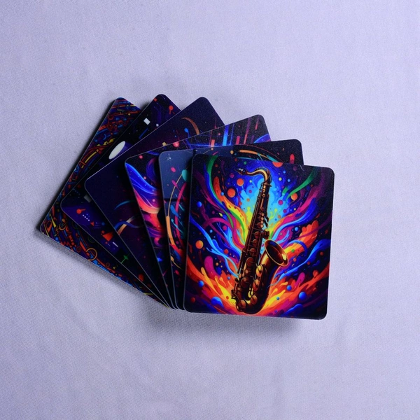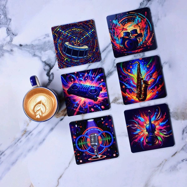 Premium Acrylic Tea Coasters UV Printed Set of 6 with Stand | Instruments