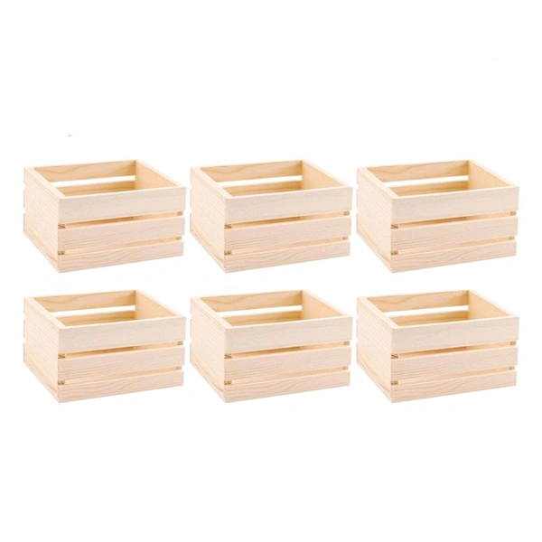 Unfinished pinewood crates with slatted sides and rustic charm.